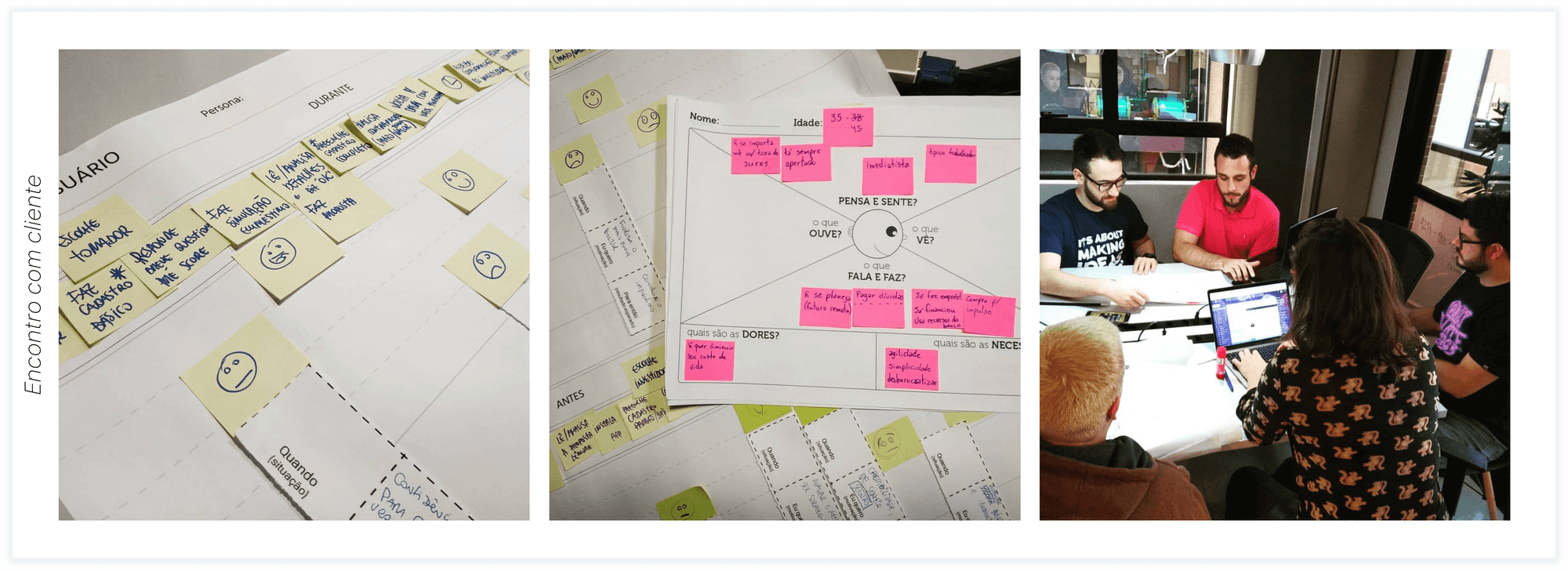 Como estávamos lidando com um cliente em uma consultoria, que já tinha o seu negócio validado, nós pudemos contar com uma ampla gama de materiais e dados sobre a proposta de valor do cliente, então essa etapa se baseou em estudar o fluxo técnico do aplicativo, dados de personas e análise de concorrentes. Aqui nós conseguimos criar os perfis de user personas nos baseando nas personas da concorrência e nos dados que nos foram passados pelo cliente.