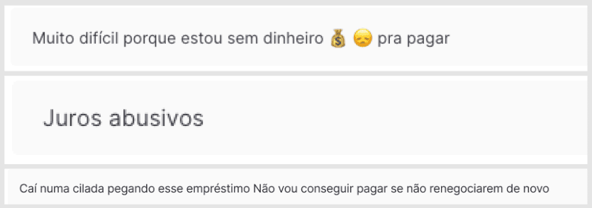Exemplos de comentários que recebemos sobre o serviço de renegociação